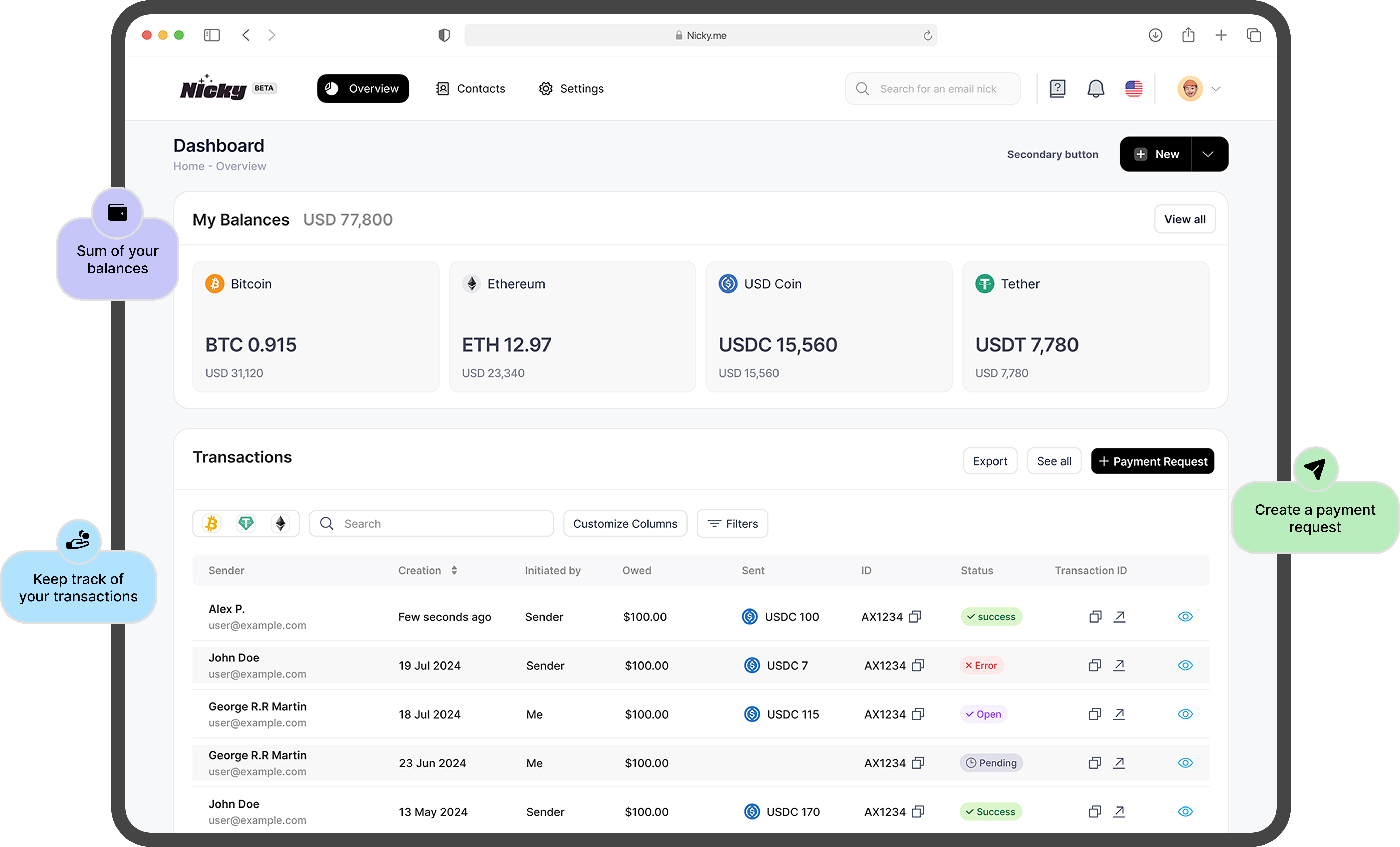 Whether you’re an individual, freelancer, or business, Nicky offers a seamless and secure crypto payment experience.