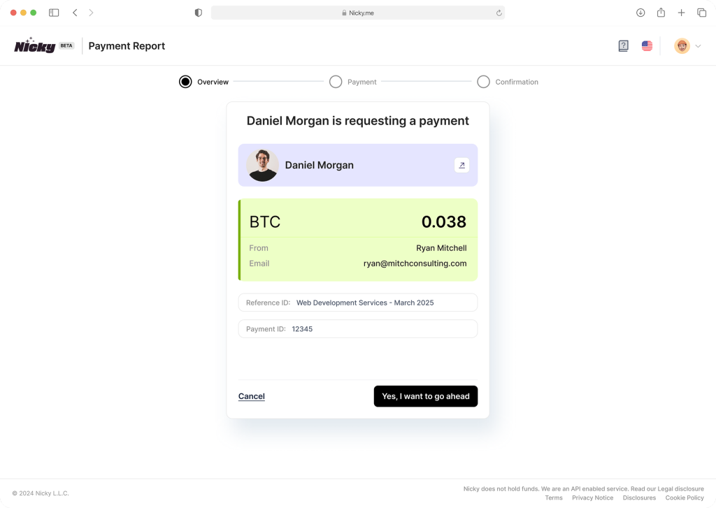 “Nicky is reliable, intuitive, and perfect for modern businesses looking to stay ahead with crypto payment solutions.”